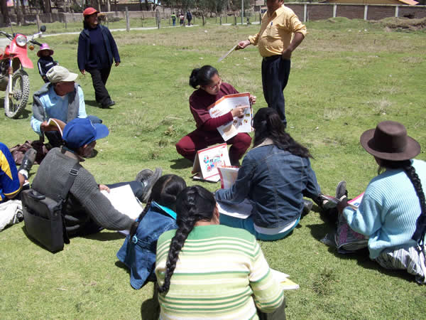 Durchführung: Fortbildungen und Werkstätten zur Bildung eines Netzes des gegenseitigen Vertrauens und der gegenseitigen Fürsorge, begleitende Besuche um Arbeitsgruppen zu fördern, die sich mit den gesundheitlichen Problematiken im Dorf auseinandersetzen, Schulung zur frühen Erkennung von Krankheitsanzeichen